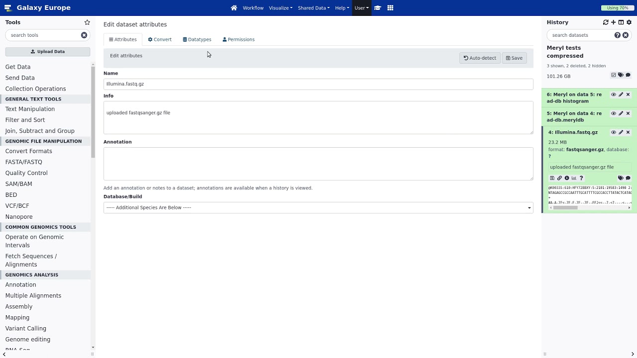 i run meryl for k-mer coverage counting due to the following workflow: Galaxy | Europe | Accessible Workflow | Kcov .